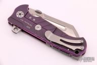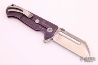 This Custom Tac-Butcher framelock flipper by Andre De Villiers has a polished blade with notched flipper and thumbrest. Handle has a bead blasted and anodized titanium frame, black C-Tek scale, bead blasted titanium backspacer with black C-Tek inlay, satin finished tip up clip. Has stainless steel lockbar insert and lockbar stabilizer, anodized titanium screws and pivot. Nice smooth action, detent, lockup and blade seating. Comes with an ADV (Andre De Villiers) nylon zippered case with velcro spot for a patch. Excellent condition. Dated 2015.