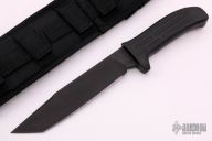 This MPK12-A2 Tanto from Mission Knives features a tanto blade with black finish, .257" blade stock and 1.368" blade depth, hidden tang construction. The handle is comprised of a black Kevlar strengthened kytrel. Lanyard hole on the pommel. Includes a original sheath and box. Excellent condition. Finding one in A2 steel is much more rare than titanium. This is the only Tanto MPK12 that Mission has ever sold. They made a very small run of tantos and for some reason they never sold any of them except for this one right here. VERY RARE.