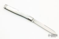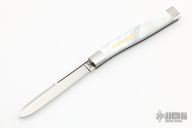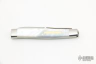 This Doctors knife features a hand rub satin finished blade with long pull nail nick. The handle has stainless steel bolsters with integral liners, bolsters are pinched, beautiful mother of pearl covers with gold pins and escutcheon, stainless steel spring. Frame is nicely rounded. Comes with original box  and COA. Seamless! Made in 2004.  Excellent condition.