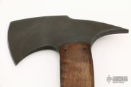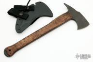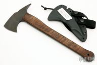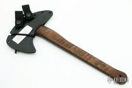A combination tool developed for Military and Law Enforcement use, the WK Combat Axe is made for breaching and combat applications. The user has easy access with a fast draw carrier. An integral glass breaker extends beyond the end of the handle. The WK Hammer Combat Axe is basically the same axe as the WK Combat Axe, but with a hammer pole rather than a spike. It is a great woodcraft or field axe or performs well as a breaching axe when hammering is part of the operation. A partial cord wrapped upper handle option is available. If the handle is damaged under the head, a new cord can readily be installed. The cord is also an excellent emergency resource. Axe Specifications Axe steel: 80CrV2 Black oxide no-glare finish Head length: 5 7/8" Overall length: 13 3/4" Blade thickness: 3/8" Skeletonzied full tapered tang Integral Glass Breaker Partial cord wrap optional Sheath Fast draw carrier Lined Kydex® HD shockcord quick-release retention system Nylon belt straps with Mil-Spec Pull-The-Dot™ snaps Designed for multiple carry options (See our Info page for carry options) Comes with original packaging. New from maker.