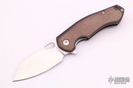 A twist on one of our favorite Biblios. We've produced a run of bronze Biblios with natural canvas Micarta inlaid into the presentation side scale, giving an already stunning knife a fresh look. And to further dress it up, we've put a satin finished M390 blade on this version.