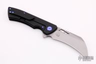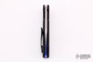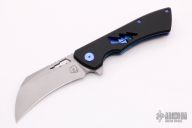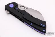 This knife by Something Obscene Company features a grey stonewash finished blade with a notched thumbrest and flipper.  The handle features black titanium with a matching tip up pocket clip and an anodized titanium backspacer and hardware.  Includes the original padded zippered case and box.  Nice detent, lockup and blade seating.  Excellent Condition.