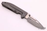 "I am a folder maker. While there will always be the occasional fixed blade, folders are my passion. The steels I enjoy working with include CPM154, ATS-34, 440C, S30V, and Stainless Damascus from Devin Thomas. All of the metal parts on my knives that can be Titanium are Titanium including frames, liners, thumbstuds, bolsters, clips and spacers. Pretty much everything except for the blade. I often anodize a substantial portion of my titanium, and can get a deep green that few makers succeed at. As far as handle materials go, I mostly use Carbon fiber, G10, or Micarta. I use large bronze pivot bushings in all of my folders, and either Nylatron or Bronze washers. All of my parts are made in-house except the screws. I have an old Bridgeport Mill, an older Logan Lathe (1943), a Hardcore grinder, and various other tools, lots of them made by myself. I also do all of my own Heat treating in an EvenHeat Oven." My knives have won several major awards, including Best Tactical Folder at the Blade Show 2011.