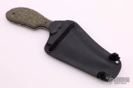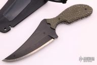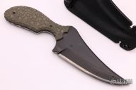 This Xerxes by Ian Wendt features a laminated blade made from carbon fiber and titanium, .268" blade stock and 1.656" blade depth, full tang construction with green stippled G-10 scales. Comes with a kydex sheath. Scuffs and scratches are visible on the blade otherwise the knife is in good condition.