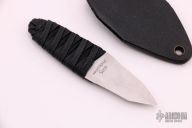 This knife by Ecos Knives features a chisel ground dagger style blade. .90" Blade stock .987" Blade Depth. The handle is cord wrapped with epoxy soaked hemp under wrap. Includes kydex sheath. The tip is slightly blunted otherwise the knife is in good condition.