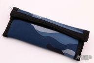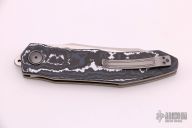 This A11 Front Flipper by Andre Thorburn and Andre van Heerden features a hand rub satin finished tanto blade with swedge, notched thumbrest and flipper. The handle has black/white/blue fat carbon scales, anodized titanium liners, carbon fiber backspacer, bead blasted titanium tip up clip. Rides on ceramic IKBS. Includes velcro case and COA dated 2021. Great blade seating, detent and lock up with a very smooth and fast flipping action. Excellent condition.