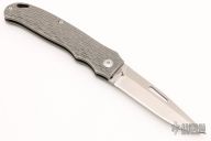 This New York Special slipjoint by JE Made features a stonewashed clip point blade with false top edge and thumbhole/nail nick. The handle has a tumble finished titanium frame with jigged covers, tumbled stainless steel spring, lanyard hole at the butt. Has half-stop, flush in all positions. Excellent Condition.