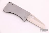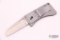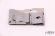 This Credit Card Knife by SOG Knives features a satin finished wharncliffe style blade with a thumbhole. The handle has a bead blasted stainless steel frame. There is a tool kit built into to where a backspacer would be that swivels out with tweezers and tooth picks.  Has a few light scuffs, otherwise excellent condition.
