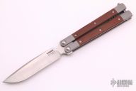 This model of the Pena Signature Series Mid-Tech Penasong comes with a blasted titanium handle with natural canvas micarta inlays and a satin finished drop point blade made from CPM-154. The Mid-Tech Penasong from Enrique Pena is a more accessible version of his custom Penasong, but doesn't sacrifice any of the quality. Each knife is assembled and hand ground by Enrique. The body screws, latch, and spacers are made out of titanium, while the pivot pins are made from stainless steel. Ceramic ball-bearings allow the knife to flip with ease and run on stainless washers to prevent wear on the titanium frame. Upgrade your balisong game and pick up one of these fine Mid-Tech Penasong knives. Comes with zippered case. Excellent condition.