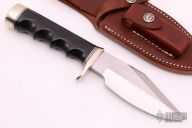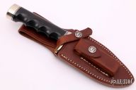 The Model 19 was designed by a professional woodsman for all-around camp and big game hunting purposes. Top of blade in front of hilt notched for thumb placement. The heavy-duty top cutting edge is especially suited for purposes that would dull the regular edge. An excellent big game skinning knife.