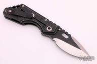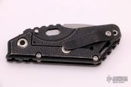 This Mick Strider custom Stub XL tanto features a two-tone blade with grandpa finished flats and satin finished grinds and swedge. The handle is grandpa finished titanium frame with a pocket clip that has a matching finish and is positioned for tip up carry. Blade is centered when closed and locks up with no play. Newt condition. Comes with a zippered case.