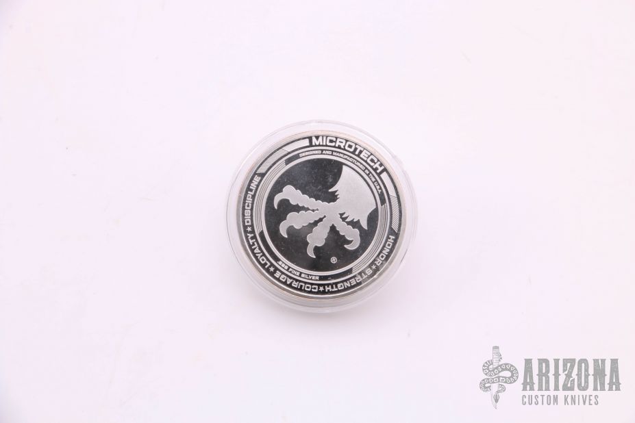 This challenge coin from Microtech Knives features a claw logo. .999 fine silver. Dated 2019. Excellent condition.