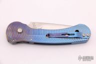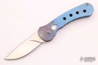 This side-opening automatic by Rob Dalton features a satin finished blade and an anodized titanium handle and tip up clip. Strong and fast leaf-spring opening. Comes with original box. Excellent condition.