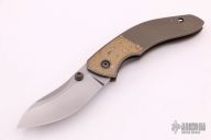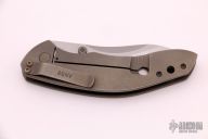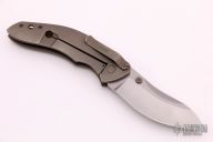 This CATO by Jens Anso features a bead blast blade with single thumbstud. The handle has an anodized and tumble finished titanium frame with matching clip, tip down carry, and a Mokume inlay. Nice lockup, detent, and blade seating. Comes with original box. #18990 inside handle. Excellent condition.