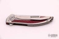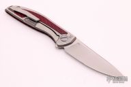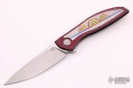 This knife is a collaboration between Shirogorov and Chris Reeve Knives, it features a tumbled blade with satin finished flats, notched thumbrest and flipper. The handle has red alutex front scale with a titanium overlay with a unique graphic, titanium lockside with red alutex inlay, tip up titanium clip with hidden screws, titanium backspacer. Comes with original box and papers. Excellent Condition.