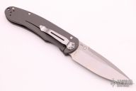 Working with Benchmade, Bradley Cutlery has produced a truly exceptional knife. From what we can tell this knife is built to last using many of the same components found in much more expensive knives. The fit and finish is beautiful. The Alias I features 6AL 4V titanium handles with blue anodized aluminum barrel spacers. Modified spear point S30V stainless blade. Monolock system (frame lock). Reversible pocket clip. Nice lockup, detent, and seating. Excellent condition, comes with original box and papers.