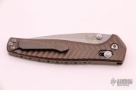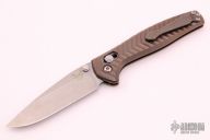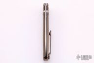 This 781 Anthem by Benchmade features a tumble finished drop point blade with dual thumb studs. The handle is comprised of a machined and integrally constructed anodized titanium frame with axis lock and matching reversible tip up clip. Excellent condition. Comes with original box and papers. First Production Run #200/1000