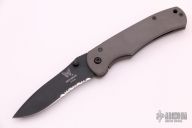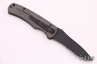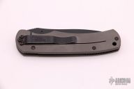 This Pinnacle by Benchmade features a black partially serrated blade with notched thumbrest and single thumbstud. The handle has a bead blasted titanium frame with black tip down stainless steel clip. Comes with original box and papers. Excellent condition.