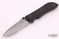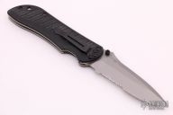This Nitrous Stryker by Benchmade features a matte finished blade with partially serrated edge. Textured black G10 scales and titanium liners with a tip down black stainless steel clip. Nice detent, lockup and blade seating. Excellent condition. Comes with original box and papers.