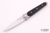 This Paul Defender by Lone Wolf Knives features a satin finished spear point blade. The handle has black G-10 scales with stainless steel liners and tip down clip. Comes with original box and papers. Excellent condition.
