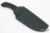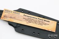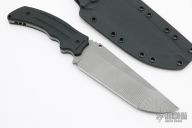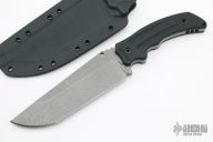 This Perseverance by Jake Hoback features a stonewashed blade with milled bevels and notched thumbrest, .224" blade stock and 1.962" blade depth, full tang construction with black G-10 scales. Comes with a kydex sheath. New from maker.