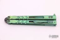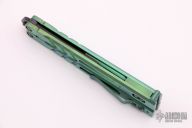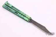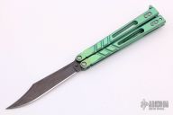 This Alpha Beast Balisong from Blade Runner Systems (BRS) features a tumble finished clip point blade. The handle is comprised of milled and anodized titanium with T latch on pommel. Excellent condition. Comes with original box and papers.