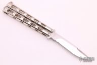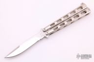 This Model 239 balisong by Benchmade features a polished stonewashed blade with false top edge. The Zanak handle has polished finish and latch. Excellent condition.