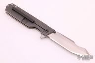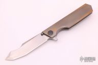 This Impromptu by Dark Earth Tactical features a hand rub satin finished tanto blade with false top edge, dual thumbstuds and a flipper. The handle has a super conductor scale, bead blasted titanium frame with satin finished edges, zirconium backspacer, pivot and tip up clip with hidden screws. Nice detent, lockup and blade seating. Comes with nylon zippered case and COA that is #27. Excellent condition.
