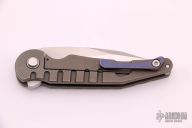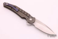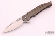 This Prick flipper from DSK Tactical Knives features a satin finished blade with flipper. The handle has a stonewashed and anodized titanium frame, anodized titanium tip up clip. Blade is centered when closed, flips well with no wrist action needed, and locks up with no play. This piece is in excellent condition. Comes with a zippered case with signed certificate of authenticity.
