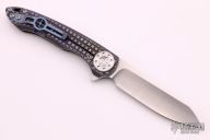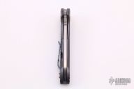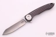 This Cruze Flipper by Curtiss knives features a satin finished blade with notched thumbrest and flipper. The handle has an anodized titanium frame with "FR" pattern milling, blasted titanium backspacer and tip up clip. Has stainless lockface insert, nice detent, lockup and blade seating, rides on bearings. Comes with a zippered case and COA dated 9-12-19. Excellent condition.