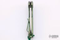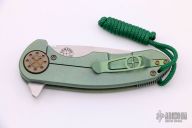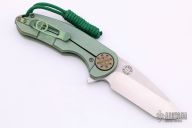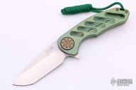 This F3 Medium by Curtiss Knives features a stonewashed tanto blade with notched thumbrest and flipper. The handle has a tumbled and anodized Oval Tac milled titanium frame over notched titanium backspacer, matching titanium tip up clip. Smooth and fast opening using a Caged Bearing System. Has a stainless lockface insert. Nice blade seating, detent and lock up. Includes padded and zippered case and COA dated 5-8-18. Excellent condition.