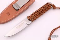 Knives in cooperation between the Klötzli cutlery and the Heritage Post. The small and handy knife is perfect as a companion for fields, forests and meadows and fits in every backpack. The hollow grinding produced by hand allows fine work despite the wide, stable back of the blade. As a Heritage Post Edition, the Klötzli model 11 with a blade length of 8 cm made of 440-C steel has been given a new look. The handle wrapped with round leather cord and the matching leather case made of saddle leather become really beautiful and individual over time. Comes with original papers and post cards. Excellent condition.