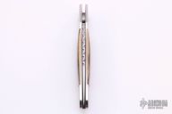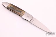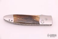 This BQ Auto by Steve Jernigan features a hand rubbed satin finish drop point blade with fileworked spine. Handle has a satin finished stainless steel frame with mammoth inlays, fileworked stainless backspacer. Nice lockup, action and blade seating. Excellent condition.