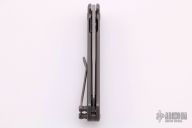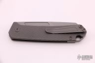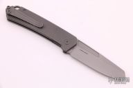 This OEM Slim is a Richard Rogers Design and features a bead blasted blade with high satin finished flats. The handle is milled and tumbled titanium with titanium backspacer, hardware and tip up clip. Nice detent, lockup and blade seating. Comes with original packaging and brown leather slip sheath. Excellent condition.