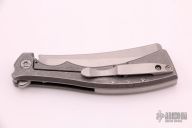 This Sheba Mid-Tech by Dervish Knives features a tumble finished blade with a notched thumbrest.  The handle is composed of a tumbled titanium frame, polished titanium backspacer and tip up pocket clip. Nice detent, lock up and blade seating.  Comes with a padded zippered case and COA Dated Feb 2021. Excellent condition.