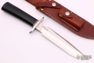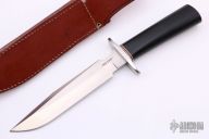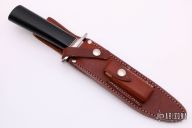This R1 Military Classic by Cold Steel features a satin finished blade with sharpened top edge, .197" blade stock and 1.219" blade depth, hidden tang construction. The handle has a stainless steel guard, red white and black spacers and black linen micarta grip. Includes brown leather sheath with belt loop and sharpening stone. Excellent Condition.