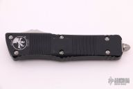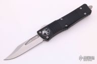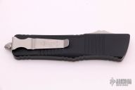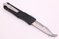 This Combat Troodon OTF automatic from Microtech features a stonewashed bowie blade with a standard edge and a black aluminum frame. Stainless steel clip. Glass breaker. Comes with original box and papers. S/N 32013 and dated 02/2021. Excellent condition.