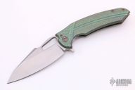 This Mako is a collaboration between Ferrum Forge and Mike Gavik of Gavko knives. This knife features a tumble finished blade, thumbhole and flipper. The handle features an anodized tumble finished frame with matching tip up titanium clip. Nice detent, lockup and blade seating. Excellent condition. Includes padded and zippered case.