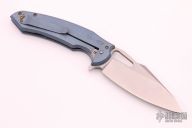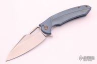 This Mako is a collaboration between Ferrum Forge and Mike Gavik of Gavko knives. This knife features a tumble finished blade, thumbhole and flipper. The handle features an anodized tumble finished frame with matching tip up titanium clip. Nice detent, lockup and blade seating. Excellent condition. Includes padded and zippered case.