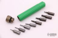 This Tool kit by Heretic Knives has all the required bits for our current knife models. Our standard tool kit will be constructed out of Stainless and cerakoted in Heretic Green w/ Bronzed Deep Engraved end cap. Tool kit will include the following bits along with reference card for all current Heretic models: