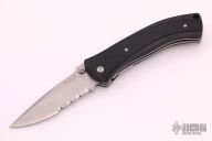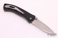 This Scale Release Automatic from V&D Knives (Butch Vallotton and Matt Diskin) features a bead blast finished spear point partially serrated blade with swedge, dual thumb studs and notched thumb rest. The handle is comprised of black polymer scales over steel liners and black polymer backspacer. Lanyard hole in pommel. Stainless steel tip up clip and lanyard hole in pommel. Includes original box. Excellent condition with no signs of use or carry.
