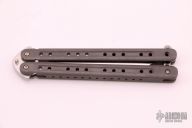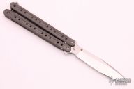 This Balisong by Craig Camerer features a satin finish drop point blade. The handles are tumbled titanium with a stainless t-latch. Excellent condition.