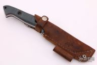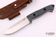 This Bushcrafter from Benchmade features a drop point tumble finished blade with .167" blade stock and 1.166" blade depth, full tang construction. The handle is comprised of green G10 scales over red liners with hollow pins and a lanyard tube with lanyard. Includes leather sheath with a belt loop. Excellent Condition. First Production #142 of 500.