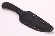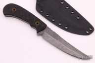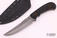 This Persian Style Fighter by Ben Tendick features an acid tumbled upswept blade with false top edge and notched thumbrest, .220" blade stock and 1.207" blade depth, full tang construction. The handle has sculpted black canvas micarta scales. Comes with a kydex sheath. Excellent condition.