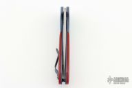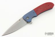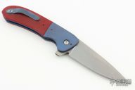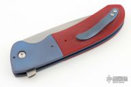 This knife by Aaron Frederick features a tumbled blade and flipper.  The handle has anodized titanium bolsters, red G10 scales, anodized titanium liners and tip up clip.  Nice detent, lockup and blade seating. Has a few light scuffs, otherwise excellent condition.