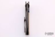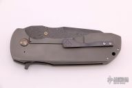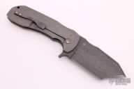 This Framelock flipper by Mazur Customs features a San Mai Damascus tanto blade and flipper with a single thumbstuds.  The handle has a bead blasted titanium frame with a zirconium bolster and a paper micarta scale, zirconium backspacer and tip up pocket clip.  Rides on bearings, nice detent, lockup and blade seating. Comes with a COA dated Feb 18.  Excellent Condition.