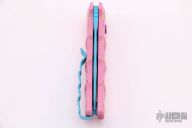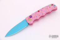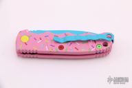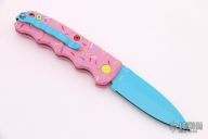 Have you ever been unfortunate enough to have to share a donut? Your plight only gets worse when you find you have to cover your high-speed, low-drag, modified, custom, mirror-edged piece of pocket jewelry in sticky sweetness. What you need is a knife designed from the ground up to go to war with a donut. And although its path to existence was unorthodox, the Dessert Warrior is here! This automatic will snap open before anyone can take more than their half of the donut. The handle is bright pink with sprinkles, and the blade has a candy blue finish, making the knife blend in with the pretty pastries of the shop. Gone are the days of not having the right tool for the job!