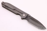 This Dauntless by T.A.D. Gear features a tumble finished black dlc spear point blade with swedge, fullers, dual thumb studs and notched thumb rest. The handle is comprised of a milled and contoured OD green G10 "A" side and tumbled titanium lock side over a notched black G-10 backspacer, titanium deep carry clip is positioned for right hand, tip up carry. Comes with original box. Has some light scuffs/scratches, otherwise good condition.