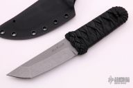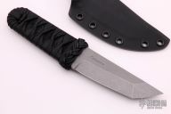 This 4" Oregonto from Ben Tendick of B.R.T. Bladeworks features a tumbled tanto style blade with swedge. .173" Blade Stock. 1.24" Blade Depth. The handle features a black Tsuka Ito and black hemp cord under wrap. Includes a kydex sheath. Brand New from Maker.