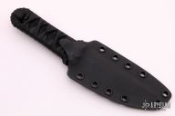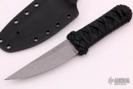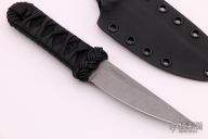 This 4" Aikuchi from Ben Tendick of B.R.T. Bladeworks features a tumbled kwaiken style blade with swedges. .177" Blade stock 1.014" Blade Depth. The handle has a epoxy soaked tsuka ito wrap over hemp cord under wrap.  Includes kydex sheath.  Includes C.O.A. New from maker.